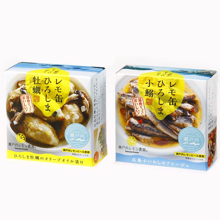 商品の種類:レモ缶ひろしま牡蠣のオリーブオイル漬け/レモ缶ひろしま小鰯のアヒージョ メーカーの都合等により、商品規格・仕様(容量、パッケージ、原材料、原産国など)が変更される場合がございます。